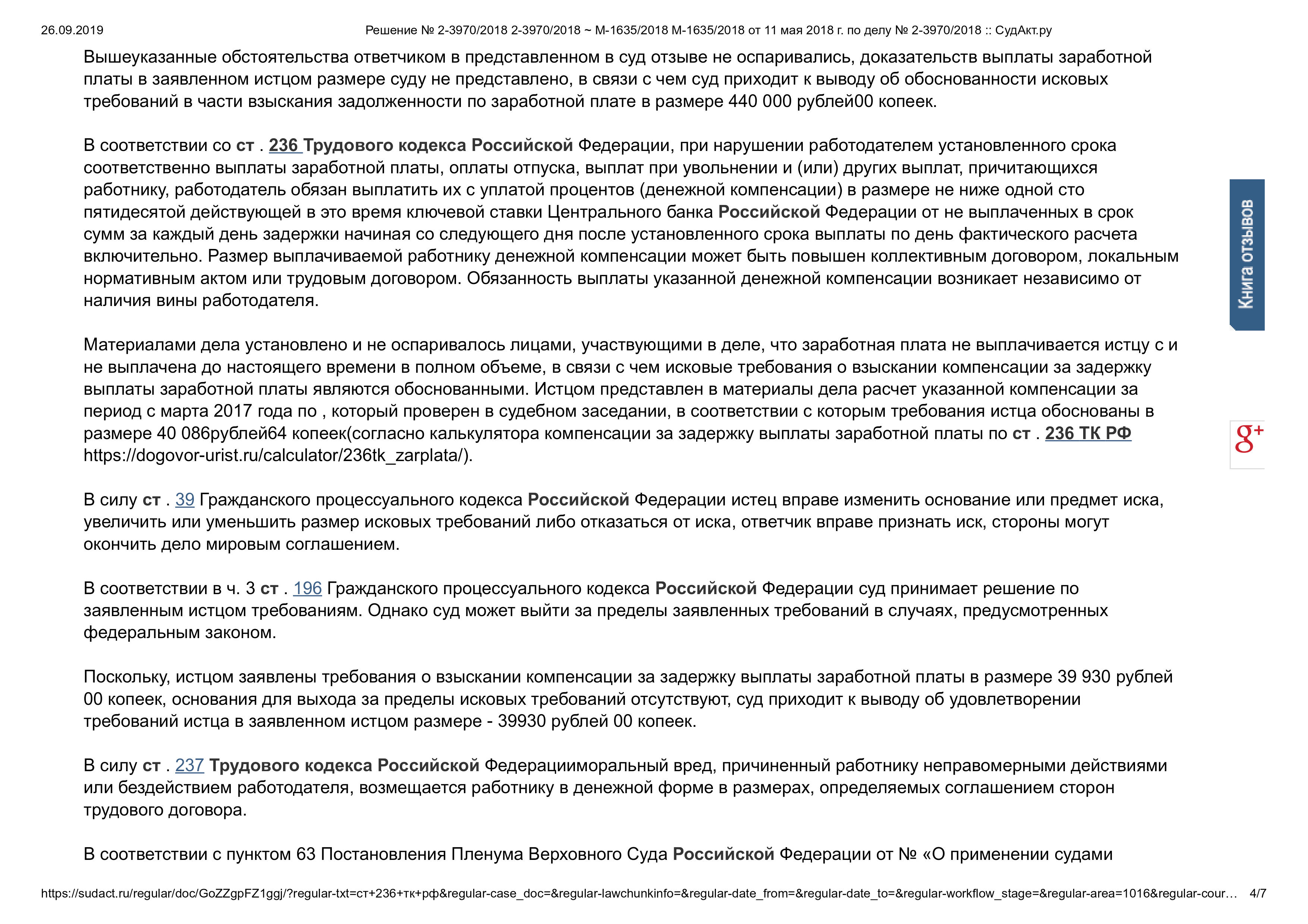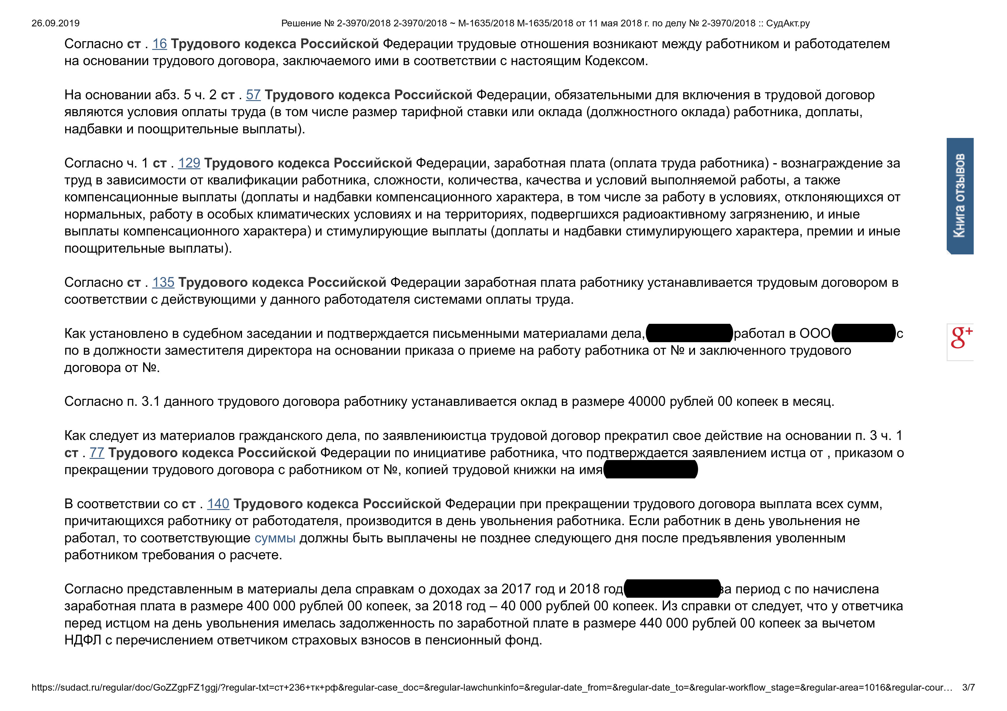 Суд решил: Взыскали заработную плату в размере 440 000 рублей 00 копеек за вычетом НДФЛ с перечислением ответчиком страховых взносов в пенсионный фонд, компенсацию за нарушение сроков выплат в размере 39 930 рублей 00 копеек, компенсацию морального вреда в размере 2000 рублей 00 копеек.